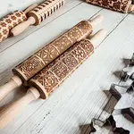 Embossed Rolling Pin & Cookie Cutter Gift Set Wood