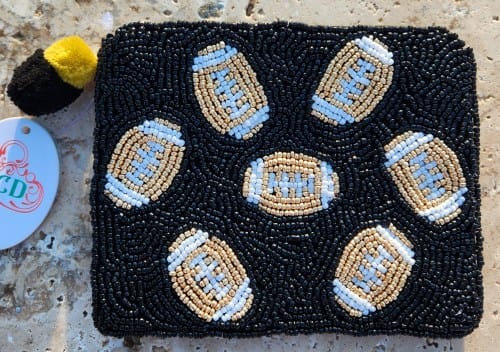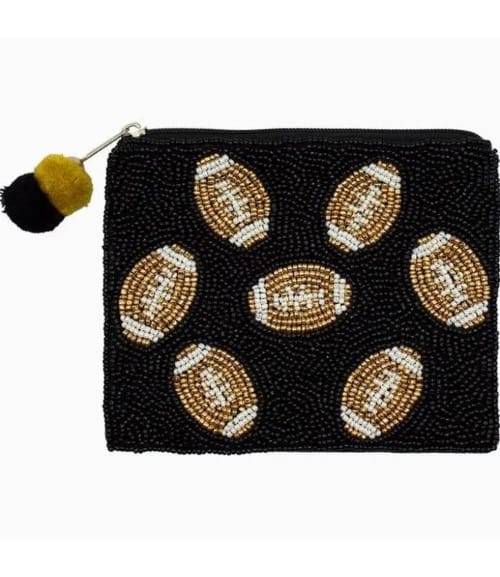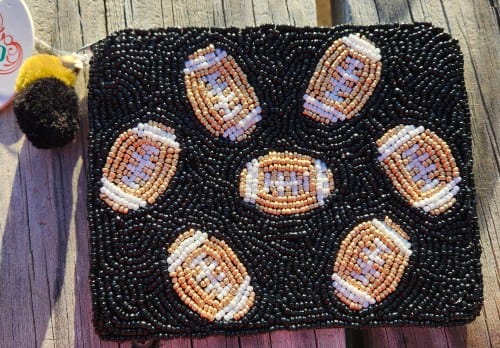 Football coin purse. Show your love for the game with this football beaded coin pouch, a sporty and stylish way to keep your essentials close.