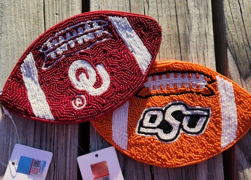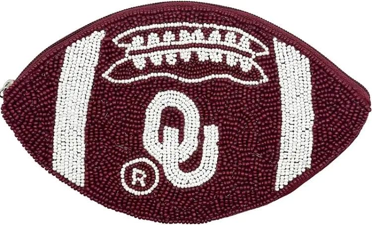 Football OU Beaded Coin Pouch LA Chic