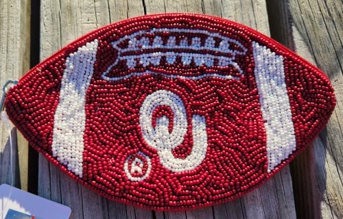 Show you Sooner spirit with an Oklahoma Sooner beaded coin pouch.