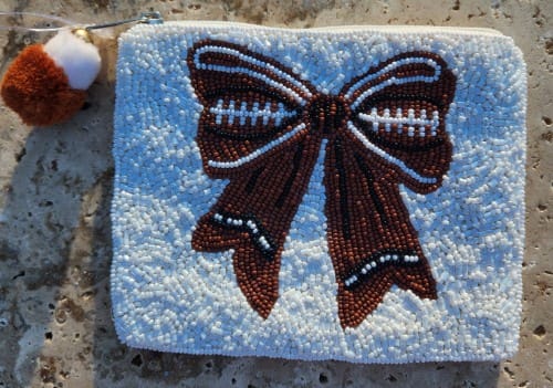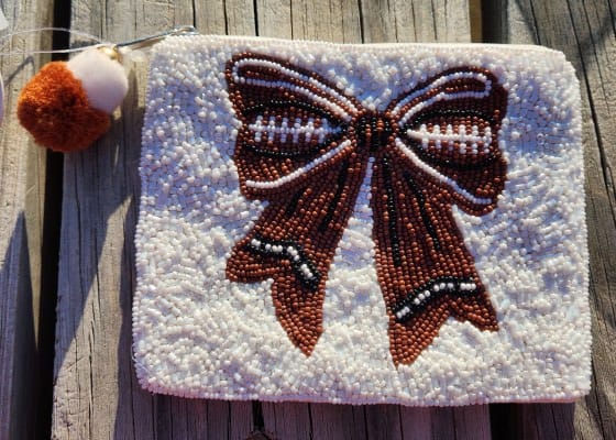 Score a chic touchdown with this football bow pouch, blending sporty charm and style for the perfect game-day accessory.
